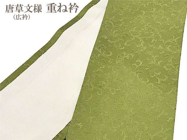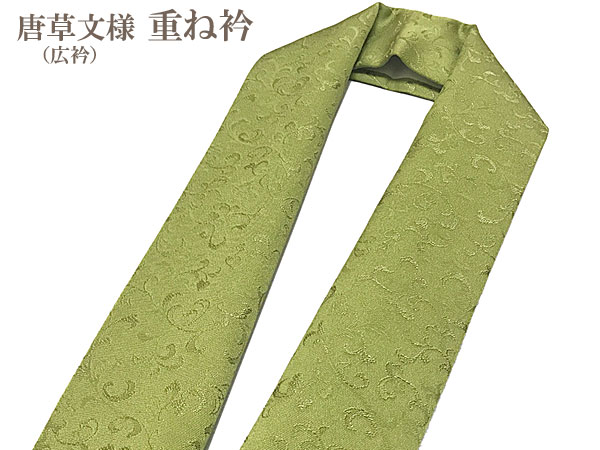 着物に優しく調和し、しっとりと馴染む 上品な絹地を使用しております。 衿元からのぞく、お洒落をお楽しみ下さい。 ◆素材 ・表地:絹100% 裏地:ポリエステル100% ・地模様:唐草文様 ◆日本製 ◆色 ・No,906;グラスグリーン ★お色の例えは洋色大辞典を参考にしています