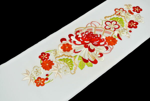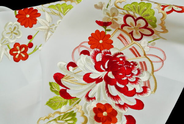【色・柄】地色:白色 柄:乱菊 刺繍色:赤・白・ピンク・黄緑・金