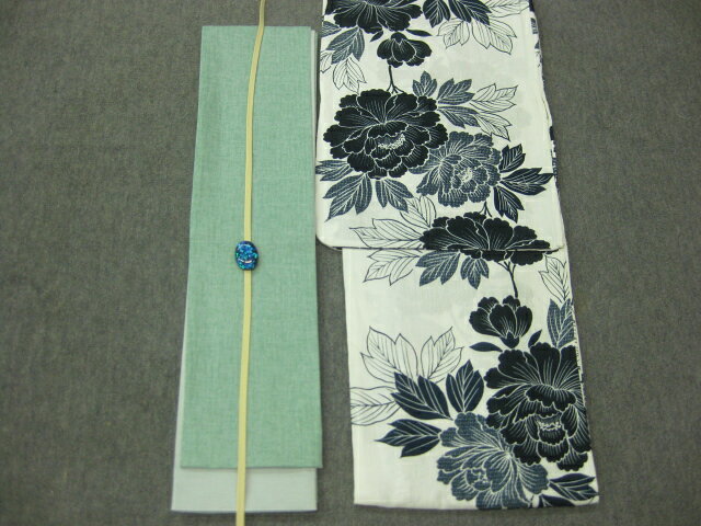 ■ ★牡丹柄浴衣・細帯・帯留と正絹三分紐の4点セット ★浴衣地色—白・柄ー黒に近い濃紺 ★浴衣素材—麻20%・綿80% ★浴衣サイズは—身丈165cm・袖丈49cm・裄67cm・・対応身長は158cm〜170cm前後の方です。