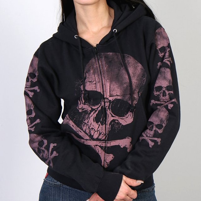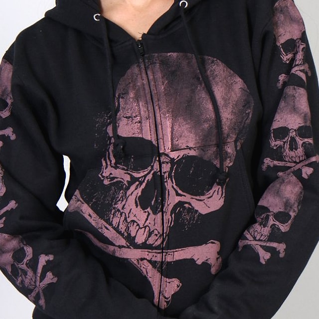 【送料無料】日本未発売! セール価格! [Skull and Crossbones Jumbo Print Zipper Hoodie] HOTLEATHERS オリジナルプリントレディースパーカー 本国ハーレー乗り愛用の米国バイカー専門アパレルブランド「ホットレザー」からの直輸入品です!