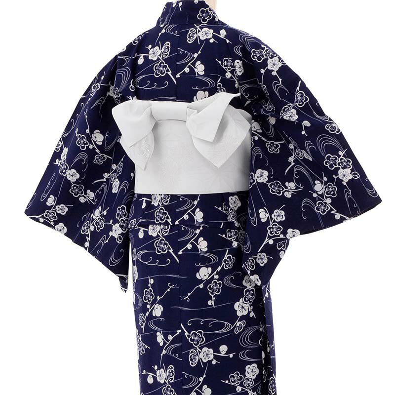 紺地に梅と流水を染めた伝統的な正統派ゆかたです。