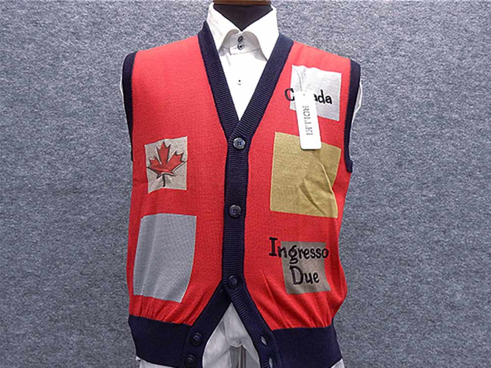 ◆Knit Vest Collection ◆ 最高級の編み上げ ボタンフロント 前開き ニットベスト 日本製 商品詳細 ニットベスト 色 赤×濃紺×グレー×カラシ×ベージュ 柄 天竺編み 前身:刺繍入り 後身:無地 素材 ウール100% 仕様 Vネック(前下がり約25cm) 5ボタン (前開き) 結合部は手間暇のかかるリンキング仕様 日本製(新潟県見附市) 店長より カジュアルシーンやゴルフにぴったりのベストです。
