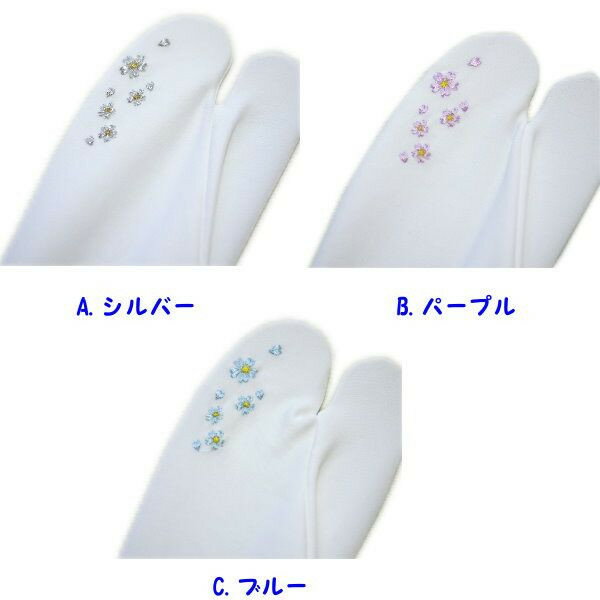 足先のワンポイントがとってもお洒落な刺繍足袋です。 伸縮性があるので足にほどよくフィットします。 シワもあまりよらないので綺麗に履いていただけます。 【サイズ】フリー(対応サイズ:22.5〜24.5cm) 【素 材】本体:ナイロン 100% 刺繍:レーヨン100%