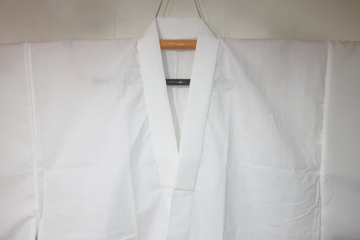 胴にあたる身頃は汗を吸う晒木綿100%、襟と袖は平絽でポリエステル100%。