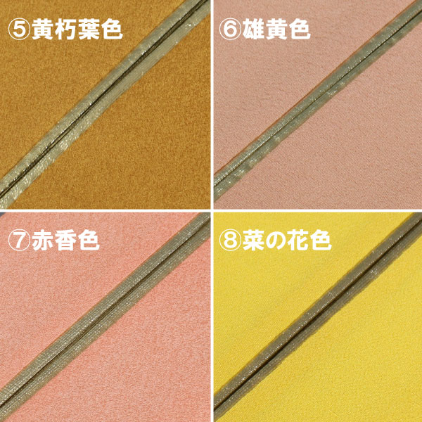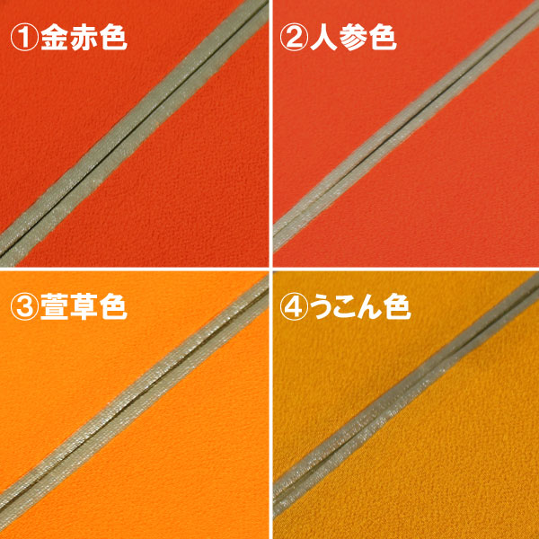 素材/表:絹100% , 金:化学繊維 重ね衿ピン付 色/(裏は全て金色) 1:金赤色 2:人参色 3:萱草色 4:うこん色 5:黄朽葉色 6:雄黄色 7:赤香色 8:菜の花色 9:山吹色 10:赤橙色 画像はイメージです。