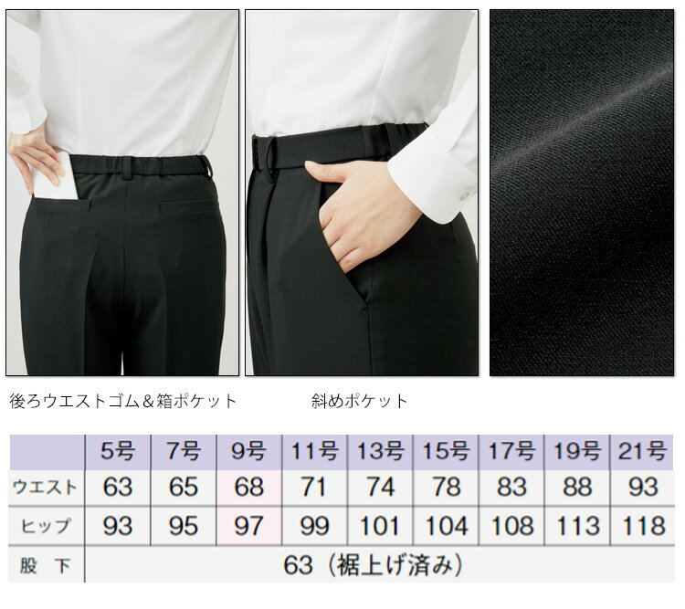 ・素材 クラッシーツイル ポリエステル100% [特徴] ・ホームクリーニング ・2wayストレッチ ・ジャストウエスト ・両脇斜めポケット ・両後箱ポケット ・前ファスナー開き ・後ウエストゴム ※取り寄せ商品、在庫有無、納期後日連絡 17号・19号はこちらから サイズ21号はこちらから B2001シリーズはこちら
