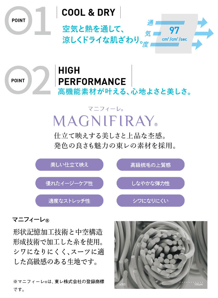 ■機能 ・2wayストレッチ ・消臭 ・速乾 ・高通気 ・クール/ストレッチ裏地 ・後ろ脇ゴム ・ベルト裏ニット ・両脇ウエストゴム ・ホームクリーニング