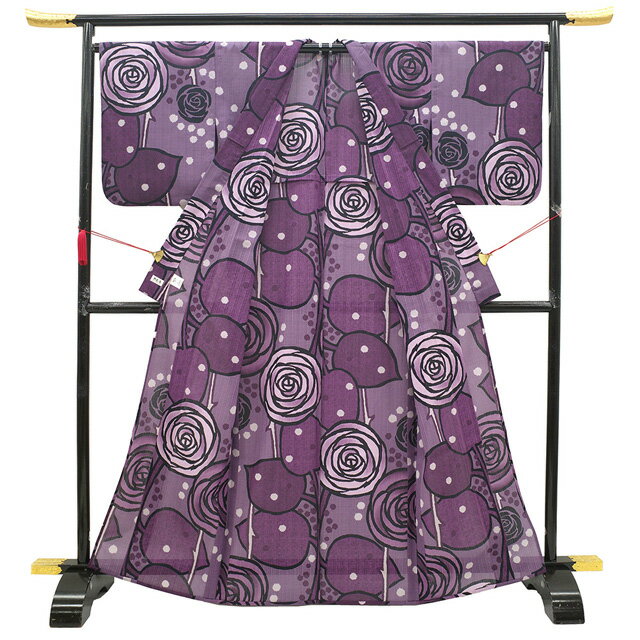 【新古品】 夏物 浴衣 未使用 着物 撫松庵 ブランド ポリエステル 紫 バラ 薔薇 洗える着物 夏着物 小紋柄 ゆかた 日本製 夏 カジュアル 浴衣 着物 仕立て上がり 身丈167 裄丈67.5 Lサイズ みやがわ sb15671 上記の価格は全て 税込み です お品物:segm 3285/7810 千 90/60/5202 未使用 新古品 撫松庵 浴衣