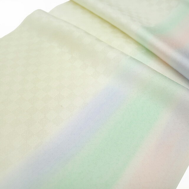 ・市松の地紋に ホワイトリリーを基調として、淡いピンク・グリーン・ブルーなどのぼかしがされたもの ・やさしい薄萱草色に草花模様が道長取りされたもの ・薄黄色地に、道長に色紙のようなデザインが表現されたもの どれも素敵なデザインですので大変おすすめです。