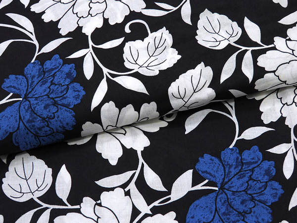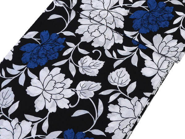 ★着物美人 ★ 浴衣 綿 黒 白 青 牡丹唐草 R411125 ★