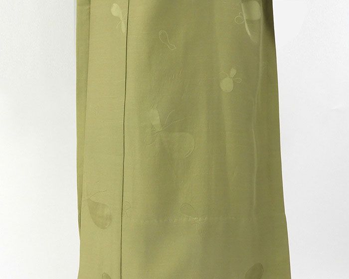 渋め山葵色地に横段瓢箪地紋がが柄付けされています。