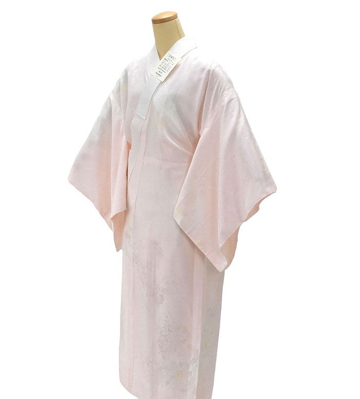 ◆色:ピンク ◆地紋:四季花熨斗地紋 ◆生地:正絹・絹100% ◆胴単衣・袖無双 ◆半衿付き(ポリエステル) ◆衣紋抜き付き ◆居敷当て付き(絹100%) ◆袖しつけ糸 ◆サイズ 身丈(背から):約131cm 身丈(肩から):約134cm 裄丈:約68cm 袖丈:約48cm 前幅:約28.5cm 後幅::約31.5cm 袖幅:約35cm ◆ハイテク仕立 ◆中国製
