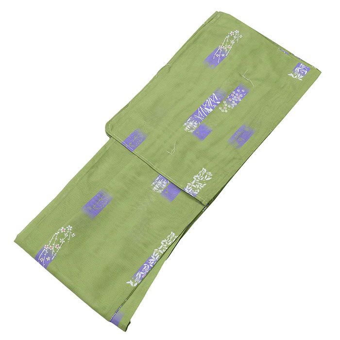 【洗える着物 絽小紋】 ◆色:リーフグリーン×ピンク・紫・イエロー 他 ◆柄:花模様 ◆Lサイズ:身丈163cm/裄68cm/袖丈49cm ◆素材:ポリエステル100% ◆生地:中国製 ◆新品仕立済