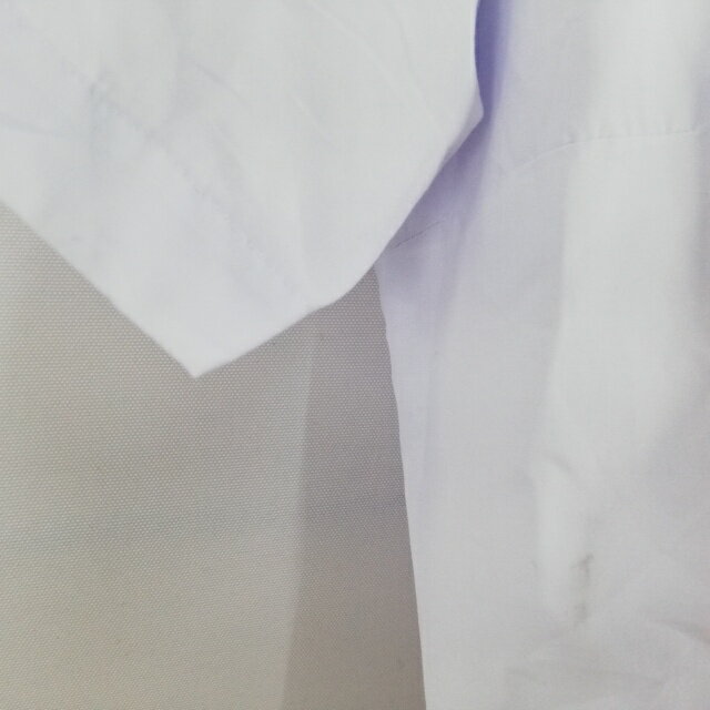 【夏ブラウス上着/白】メーカー:富士ヨット素材:ポリエステル65%綿35%織り:特殊前開き(ボタン仕様)学校名:不明ランクC●上着実寸サイズ着丈:47cm肩幅:40cmバスト:96cm袖丈:19cm