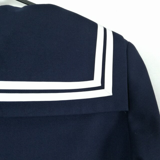 【冬セーラー服上着/紺】素材:ウール60%ポリエステル40%織り:サージかぶり型(ファスナー仕様)白2本線学校名:不明ランクC●上着実寸サイズ着丈:42cm肩幅:38cmバスト:92cm袖丈:52cm