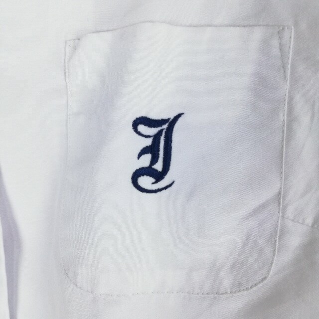 【夏ブラウス上着/白】素材:ポリエステル65%綿35%織り:特殊前開き(ボタン仕様)学校名:不明ランクC●上着実寸サイズ着丈:50cm肩幅:41cmバスト:100cm袖丈:19cm