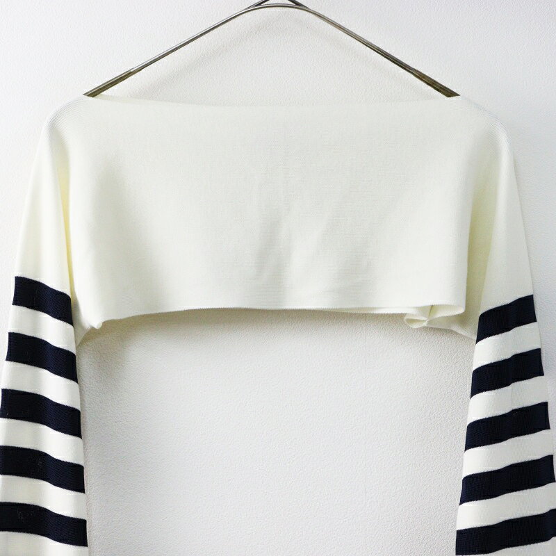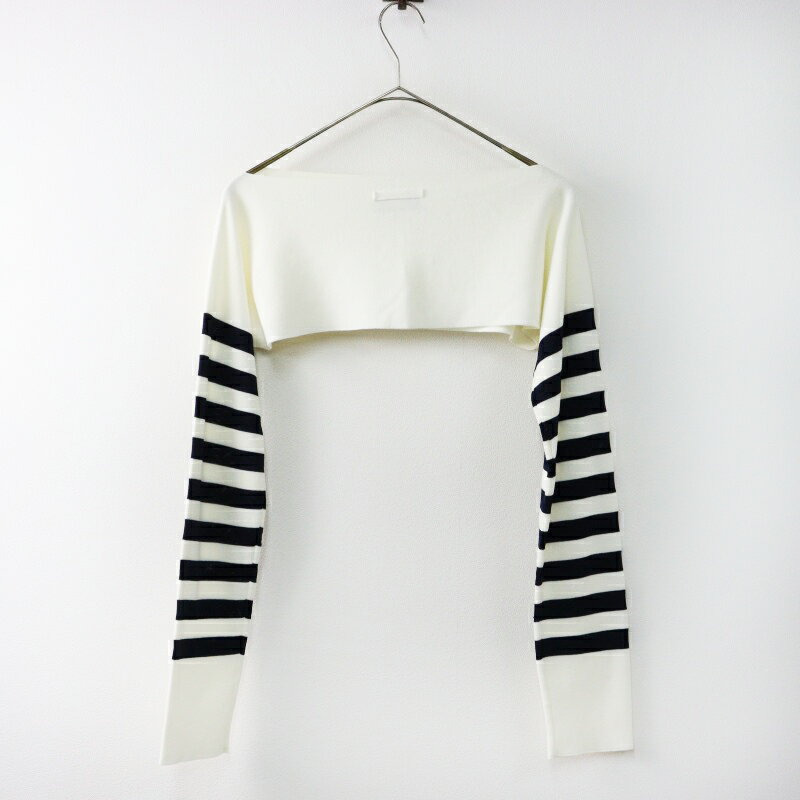 JPタグ イタリア製 ジャンポール ゴルチエ Jean Paul GAULTIER ボーダーショートボレロ ニット M エクリュ ネイビー┃