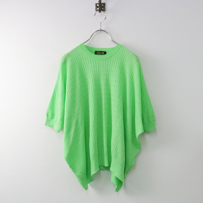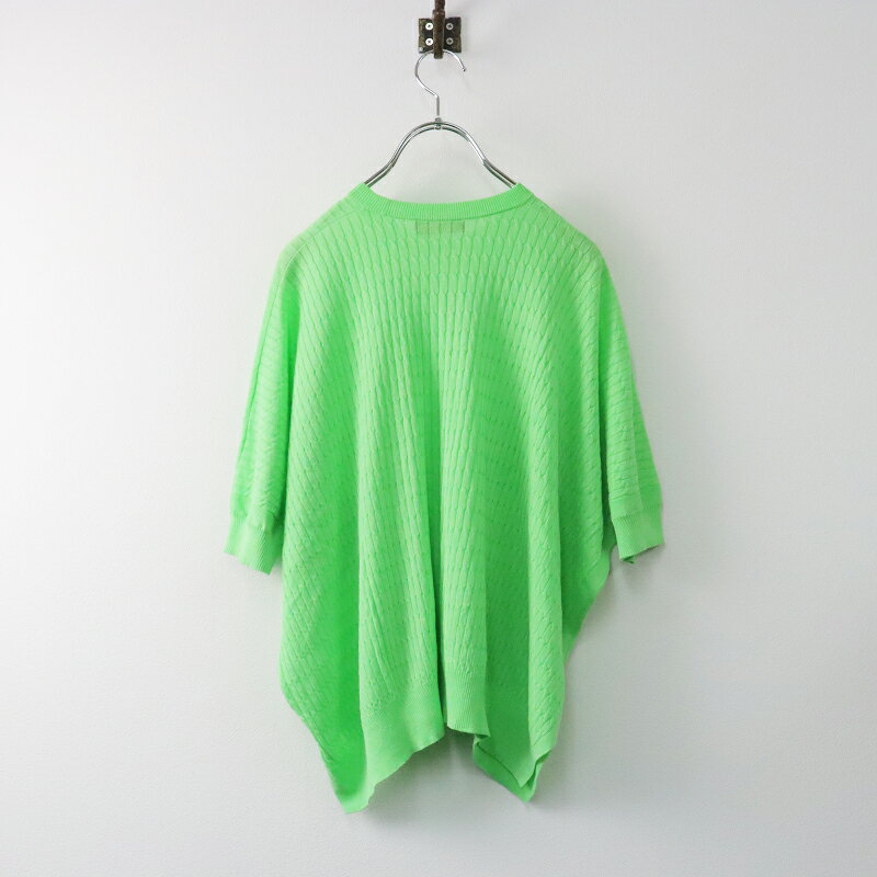 2019SS ドゥロワー Drawer 18Gケーブル編みショートスリーブニット /ネオングリーントップス コットン プルオーバー