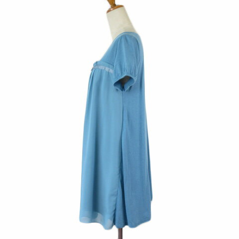 【中古】エニィファム anyFam チュニック ワンピース プルオーバー タック リボン シフォン 半袖 3 青 ブルー レディース