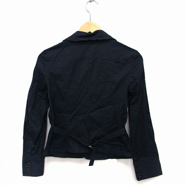 【中古】ハリス HARRISS テーラード ジャケット アウター バックベルト 無地 コットン 綿 38 ブラック 黒 /FT8 レディース
