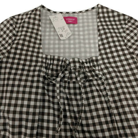 仕様カットソー スクエアネック 長袖 リボン 裾フリル コットン ギンガムチェック状態タグ付きの未使用品です。