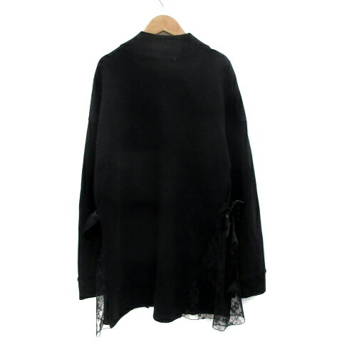 【中古】BUBBLES バブルス チュニック トレーナー 長袖 ボトルネック 無地 リボン レース オーバーサイズ F 黒 ブラック /YS34 レディース