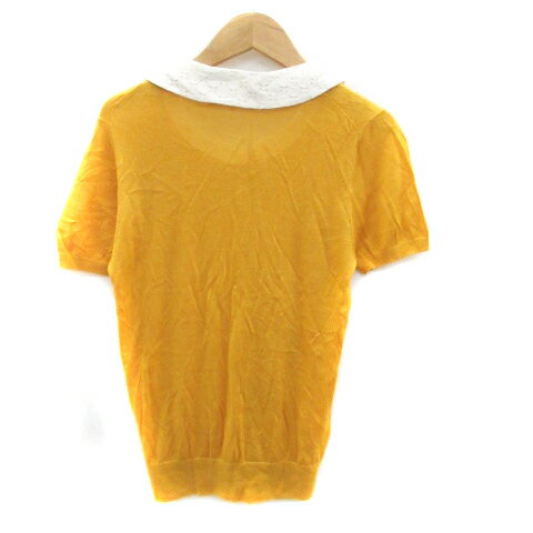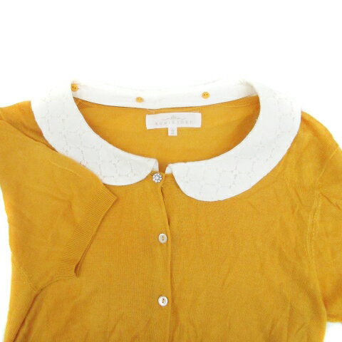 【中古】クミキョク 組曲 KUMIKYOKU ニットカーディガン ラウンドネック ラウンドカラー 2way 半袖 シルク混 2 黄色 イエロー オフホワイト /HO31 レディース