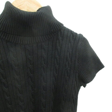 【中古】アトリエサブ ATELIER SAB ニット カットソー 半袖 タートルネック ケーブル編み ウール混 38 ブラック 黒 /YM41