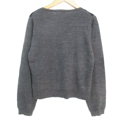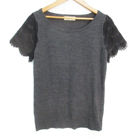 【中古】ビアッジョブルー Viaggio Blu アンサンブルニット カーディガン ミドル丈 カットソー 半袖 ラウンドネック 切替 レース ウール混 2 杢グレー 黒 ブラック /FF49 レディース