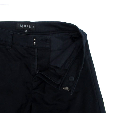 【中古】インディヴィ INDIVI クロップドパンツ 七分丈 ロールアップ シャーリング 34 紺 ネイビー /HO17 レディース