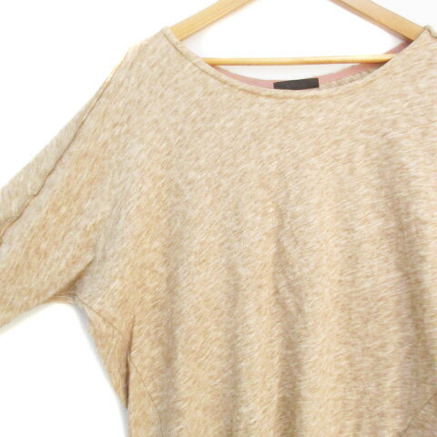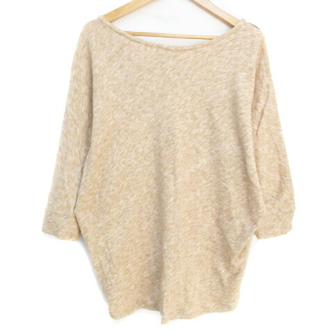 【中古】ケーティー キヨコ タカセ K.T KIYOKO TAKASE ニット カットソー 七分袖 ドルマンスリーブ ボートネック 総柄 ウール混 9 ベージュ 白 ホワイト /FF23 レディース