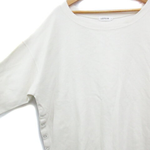 【中古】レプシィム ローリーズファーム LEPSIM LOWRYS FARM チュニック カットソー 五分袖 ラウンドネック 無地 ビッグシルエット F オフホワイト /FF17 レディース