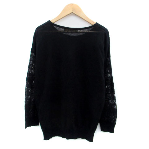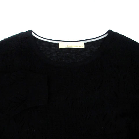【中古】ガリャルダガランテ GALLARDAGALANTE ニット カットソー ラウンドネック 七分袖 リネン混 F 黒 ブラック /HO17 レディース