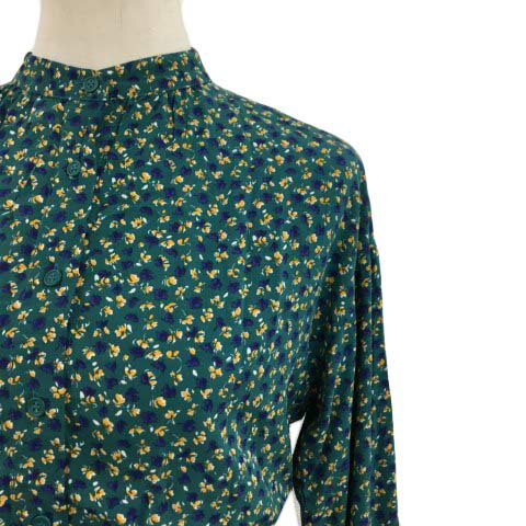 【中古】グローバルワーク GLOBAL WORK ワンピース シャツワンピース フレア ロング バンドカラー 総柄 長袖 M 緑 紫 グリーン パープル レディース