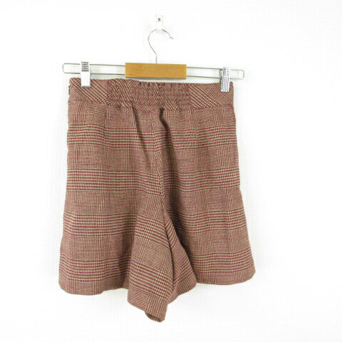 【中古】未使用品 レストローズ L'EST ROSE キュロット ショートパンツ チェック 茶 2 *T175 レディース