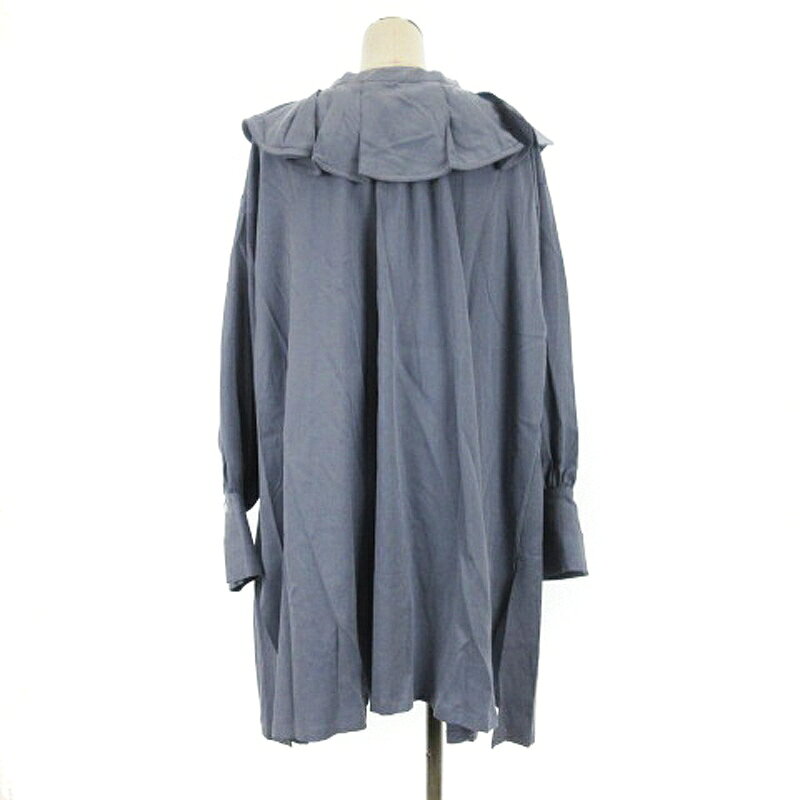 【中古】未使用品 ユウ yuw 2WAYエリ チュニック シャツ 長袖 ブルー 241129E