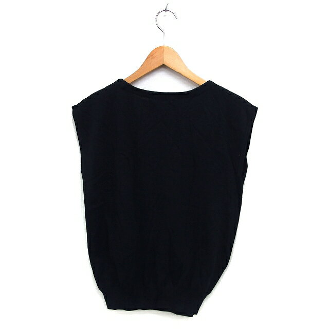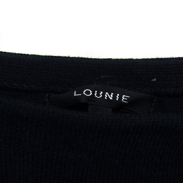 【中古】ルーニィ LOUNIE ニット セーター フレンチスリーブ リブ コットン混 ボートネック 半袖 F 黒 ブラック /NT14 レディース