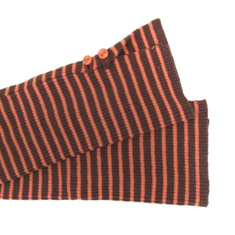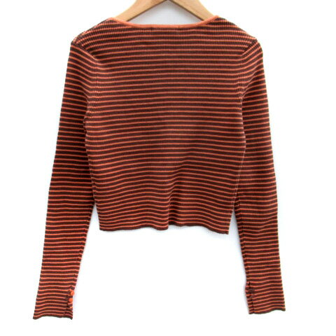 【中古】マウジー MOUSSY ニットカーディガン ミドル丈 ラウンドネック リブ ボーダー柄 F オレンジ 茶 ブラウン /SM34 レディース
