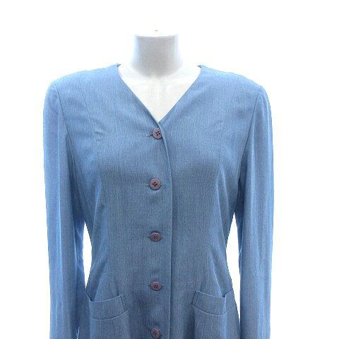 【ベクトル 古着】 250327表記サイズ9(日本サイズM程度)実寸サイズ肩幅:約41cm 身幅:約48cm 着丈:約112cm 袖丈:約56cm 素材表地ポリエステル100% 裏地キュプラ100%色ライトブルー仕様前ポケット×2 肩パッド入り状態襟周り、両袖口、裾周りに薄いシミがありますが、その他に目立ったダメージはなく、問題なくご使用いただける商品です。