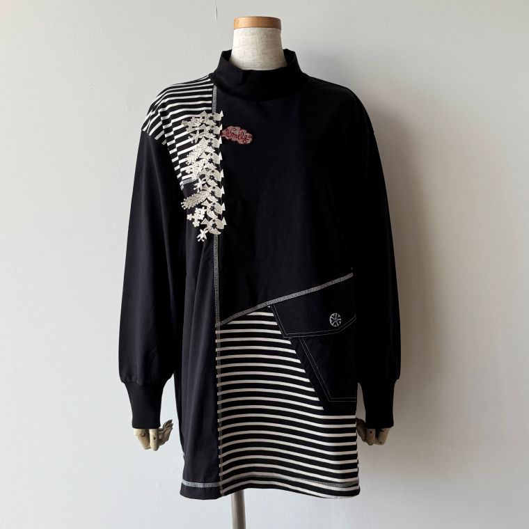 【中古】ブージュルード Bou Jeloud チュニック ブラウス プリーツ ボートネック プルオーバー 長袖 38 黒 ブラック /TT レディース