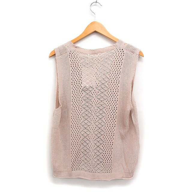 【中古】未使用品 ミニミニストア Miniministore タグ付き 透かし編み サマーニット ベスト Vネック ワンサイズ ベージュ系 /FT25 レディース