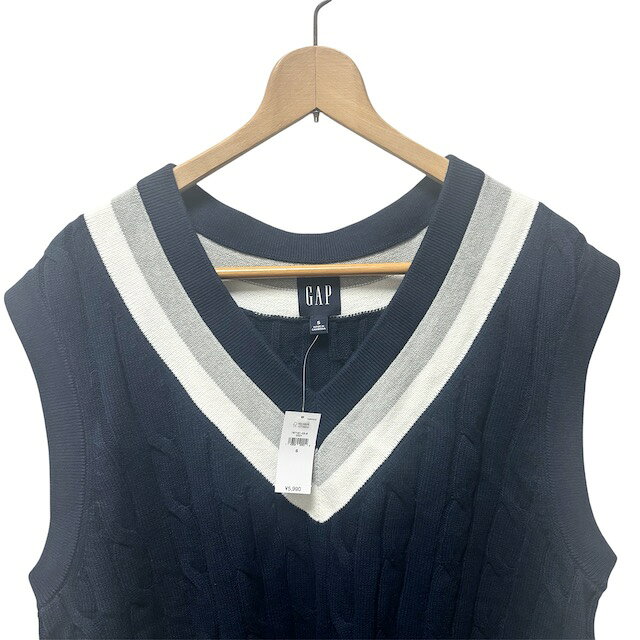 【中古】ギャップ GAP タグ付き ニットベスト トップス ネイビー グレー S メンズ