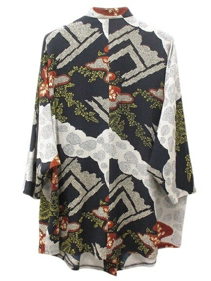 【中古】シセンドウ 詩仙堂 HITOSHI TAMURA ちりめん 縮緬 チュニック ブラウス ネイビー系 和柄 絞り風プリント ドルマン レディース