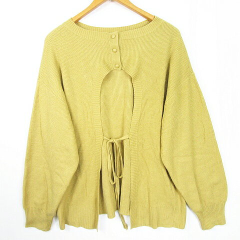 【中古】ローリーズファーム LOWRYS FARM バックオープン ニット カットソー 長袖 F マスタード kz11443 レディース