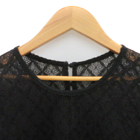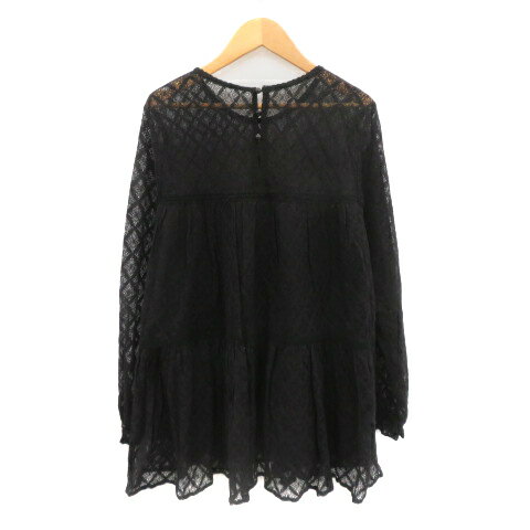 【中古】グリーンレーベルリラクシング ユナイテッドアローズ green label relaxing チュニック カットソー 長袖 レース シースルー 黒 ブラック /YK29 レディース