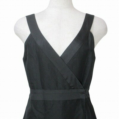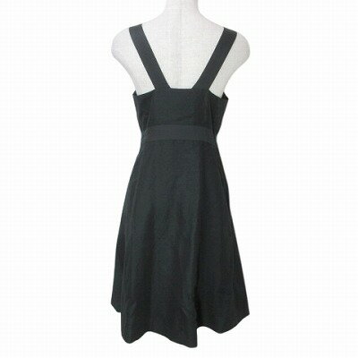 【中古】ドレステリア DRESSTERIOR ジャンパースカート ラップワンピース ひざ丈 ノースリーブ 無地 黒 ブラック 36 S相当