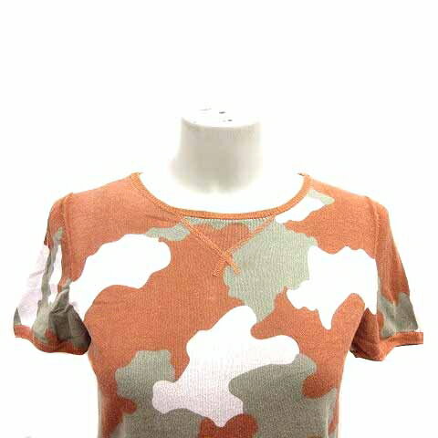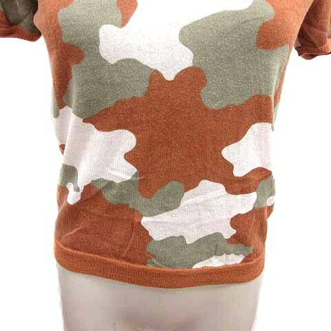 【中古】グリーンレーベルリラクシング ユナイテッドアローズ green label relaxing ニット カットソー ショート丈 迷彩 カモフラ 半袖 茶 ブラウン 白 ホワイト 綿 グリーン /YK レディース
