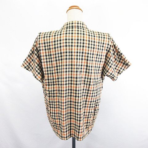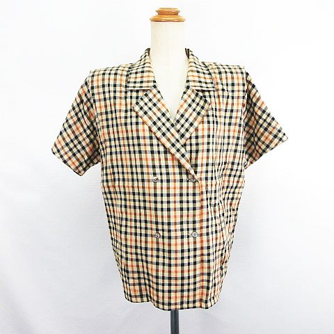 【中古】ダックス DAKS セットアップ スカートスーツ ジャケット 半袖 ドルマンスリーブ テーラード ダブル スカート ミモレ丈 フレア インバーテッド チェック 11 72-96 ベージュ