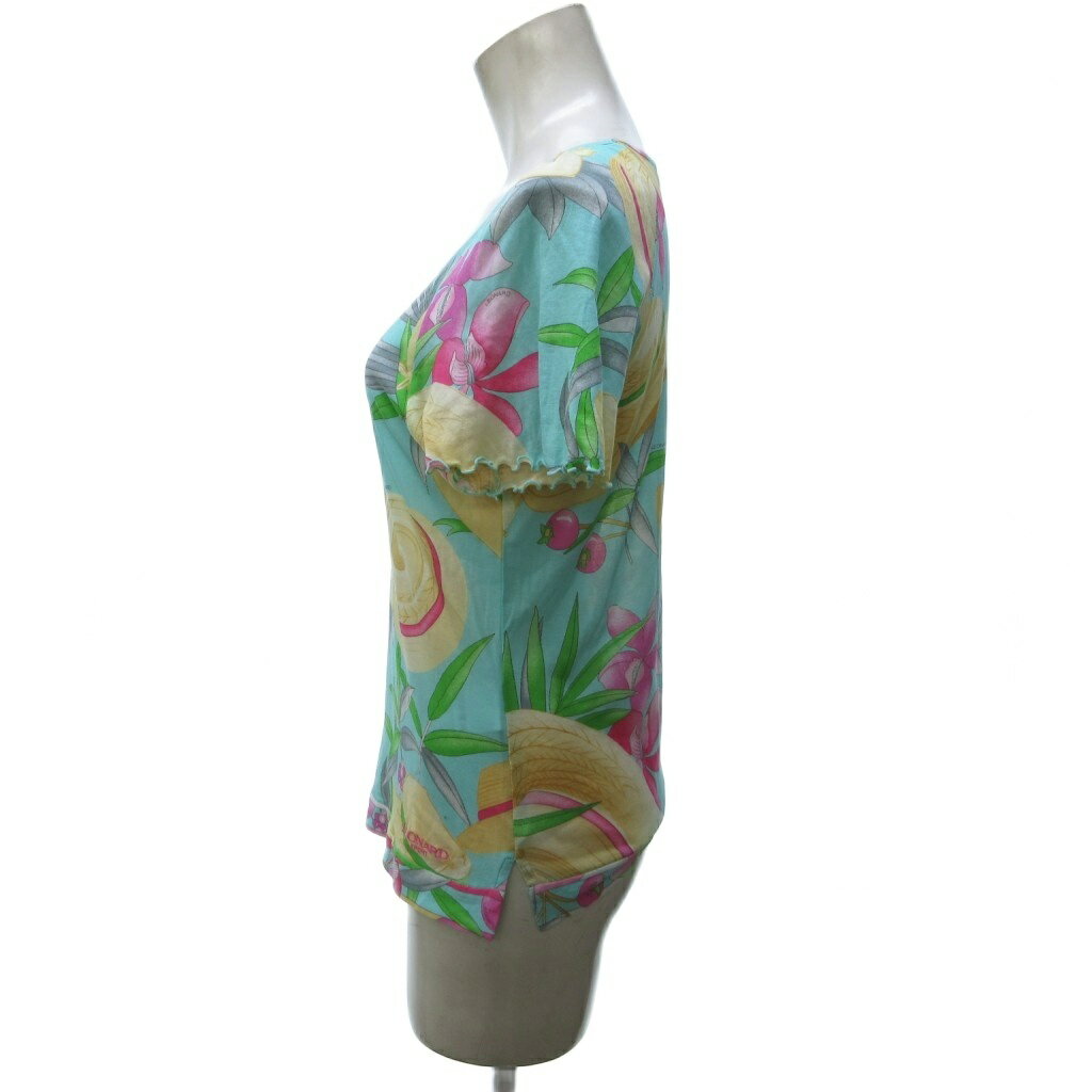 【中古】レオナールスポーツ LEONARD SPORT 花柄 ボタニカル柄 カットソー Tシャツ 半袖 フリル袖 ボートネック 38 約M IBO79状態ランク ”AB”詳細については、下記および「状態ランクについて」ページをご覧ください。