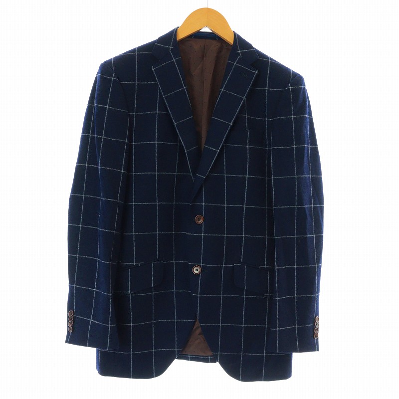 【中古】STYLE&MORE INTER MODA CANONICO生地 SUPER 100'S シングルスーツ セットアップ 上下 オーダーメイド テーラードジャケット パンツ チェック 紺 ネイビー /KU メンズ